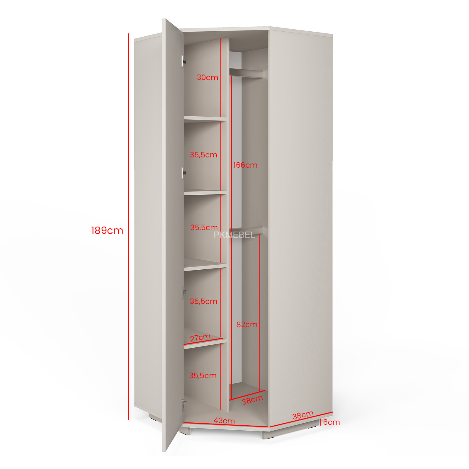 - szafę narożną z lustrem w kolorze Cashmere