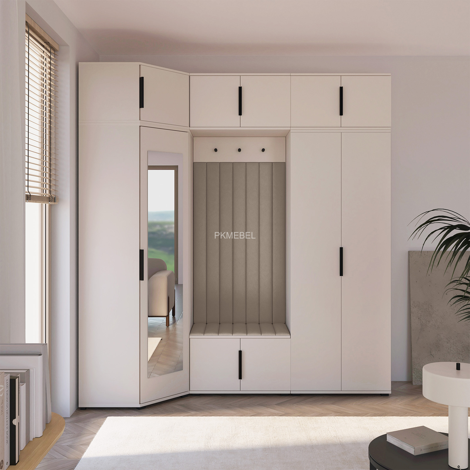 - Istnieje możliwość wyboru sposobu otwierania frontów garderoby – za pomocą eleganckich, czarnych metalowych uchwytów lub systemu „push to open”.