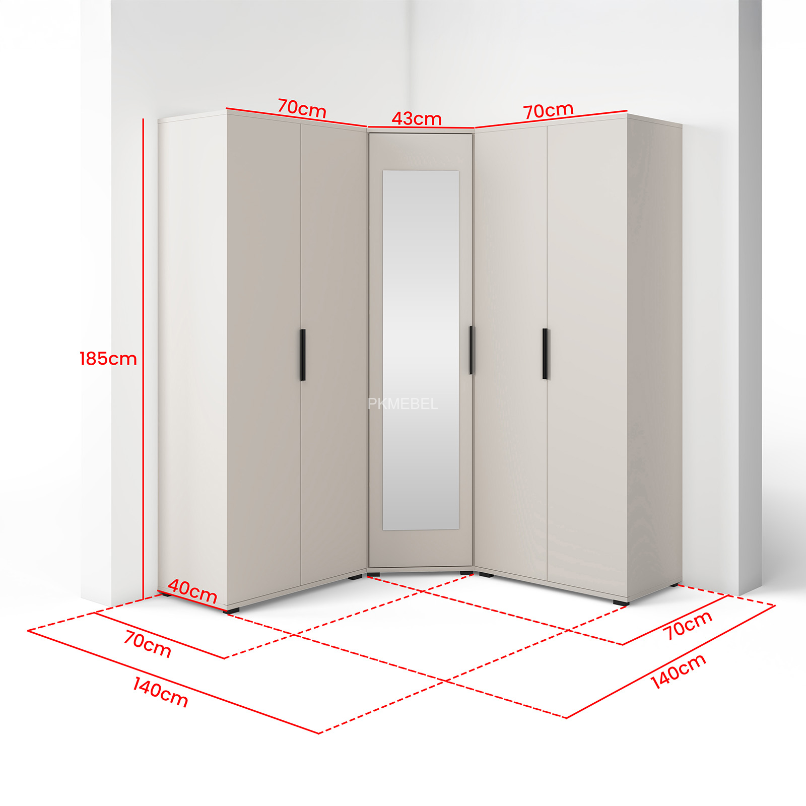 - szafę narożną z lustrem w kolorze Cashmere