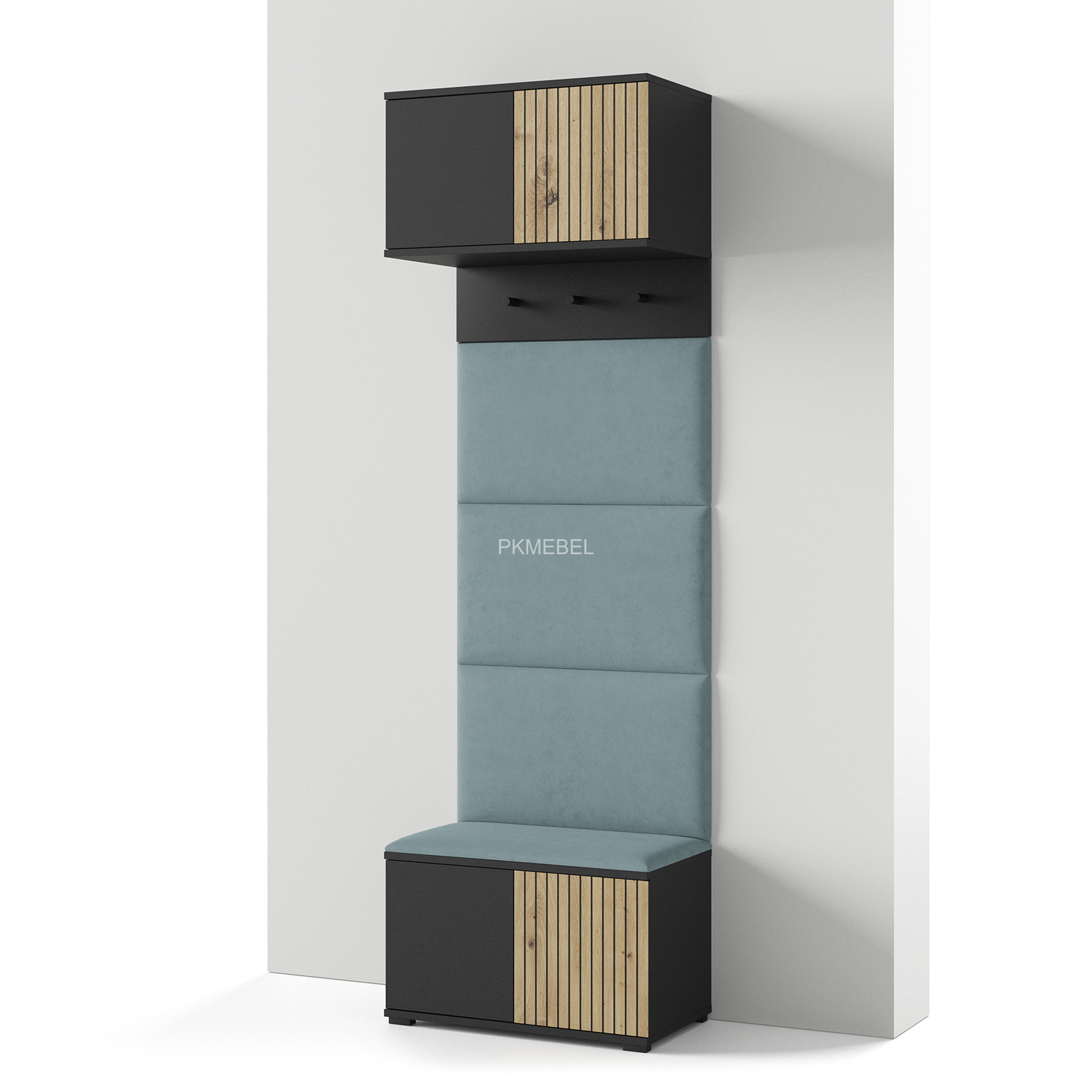 - szafka na buty w kolorze czarnym z lamelami w kolorze dąb artisan
