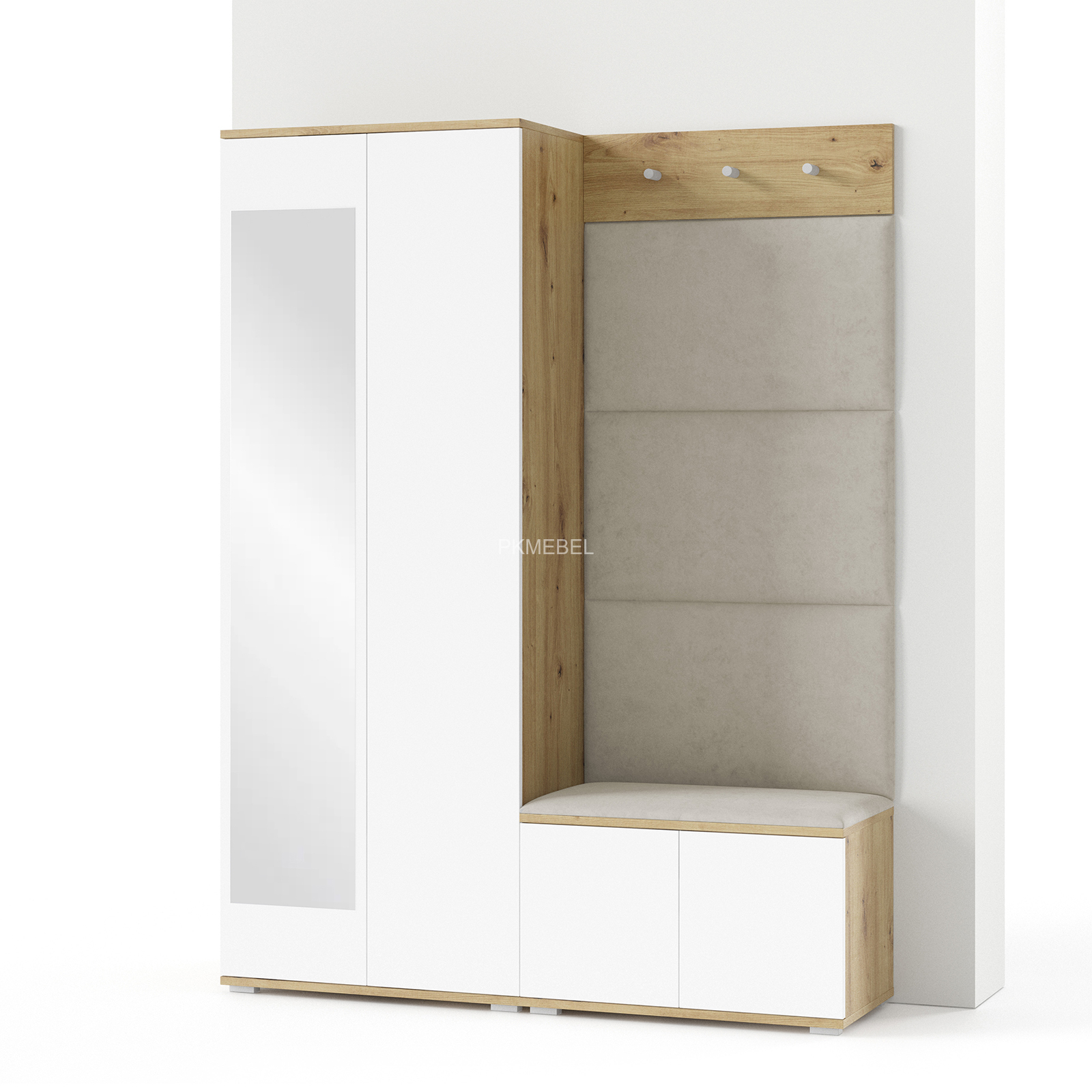 - szafkę na buty korpus w kolorze dąb artisan i fronty w kolorze białym