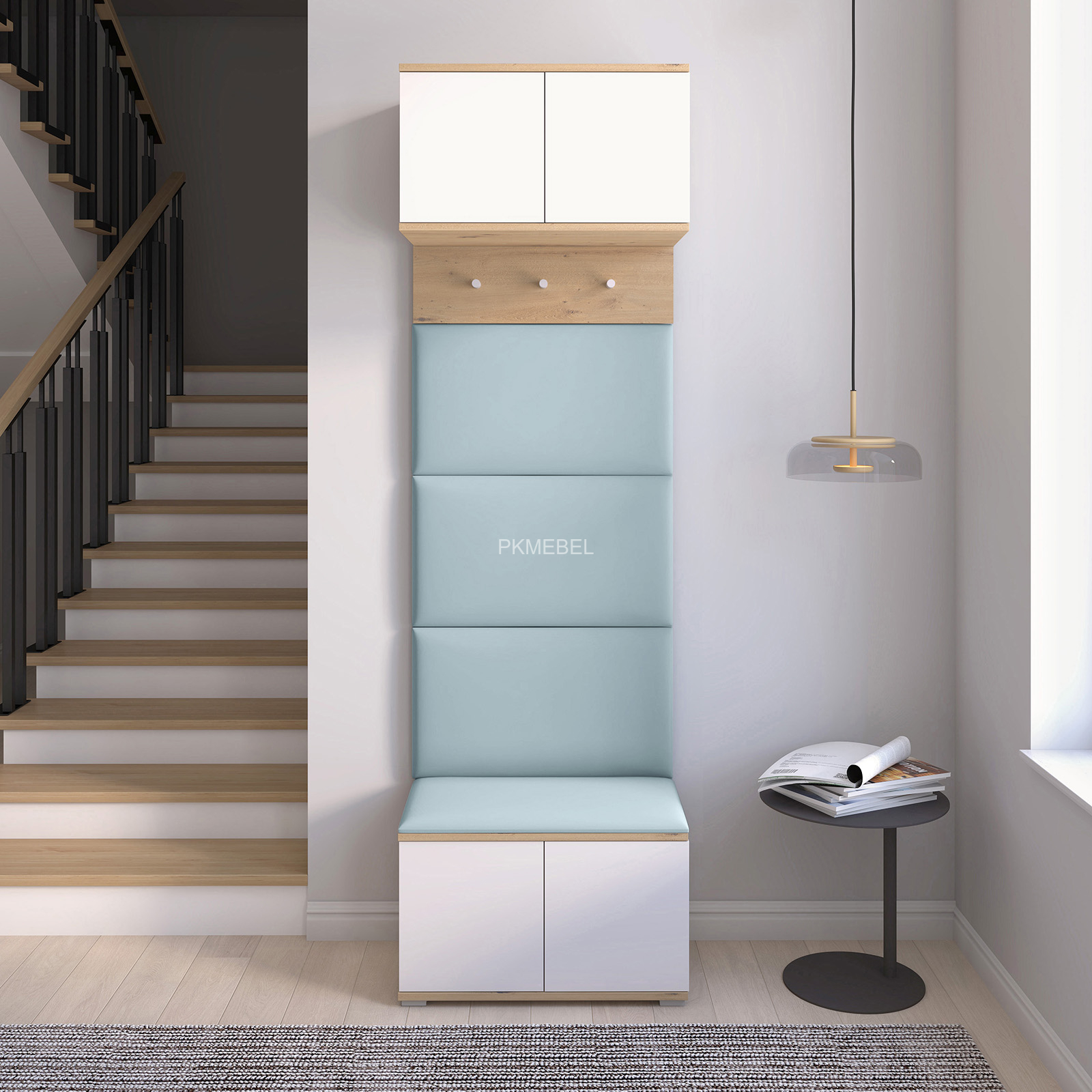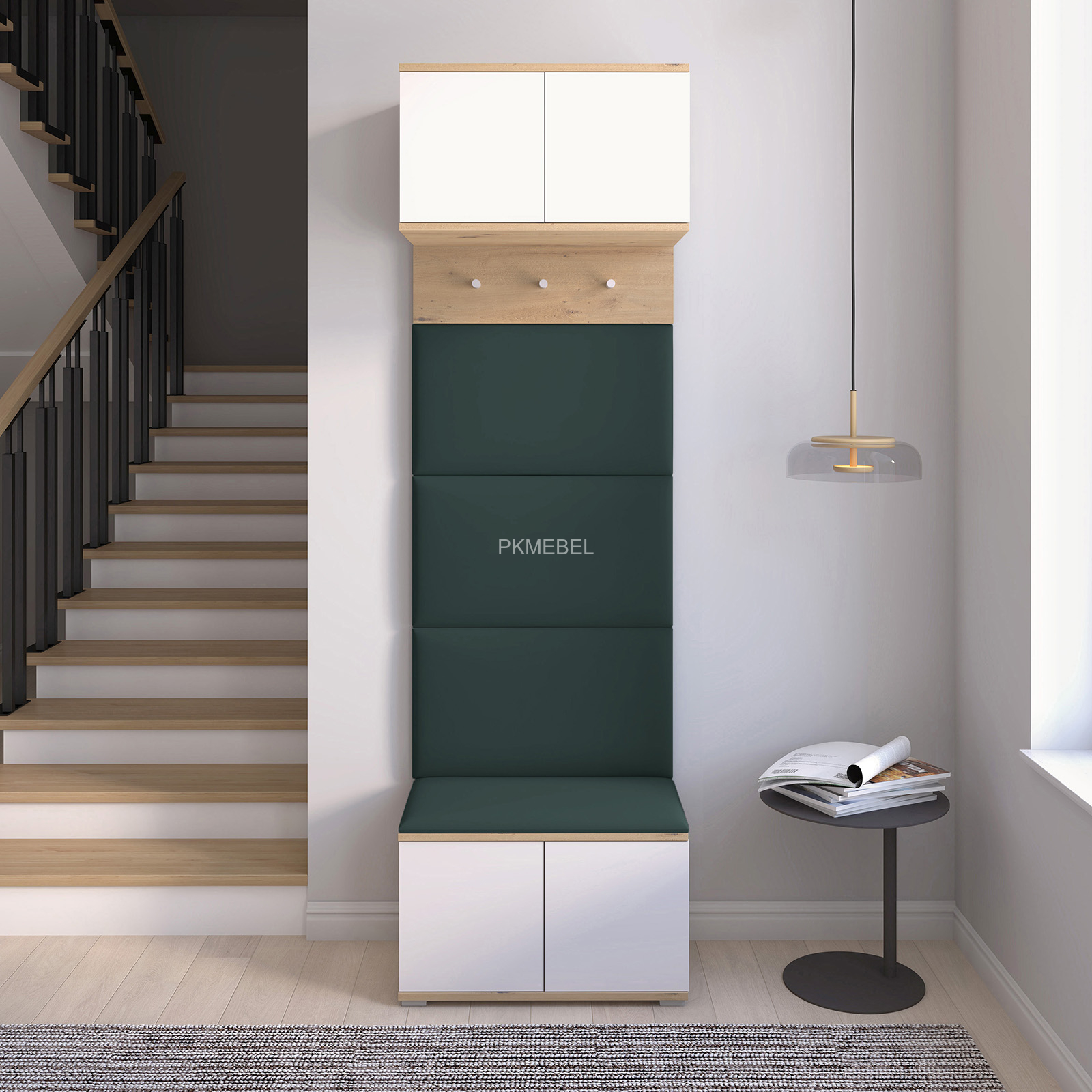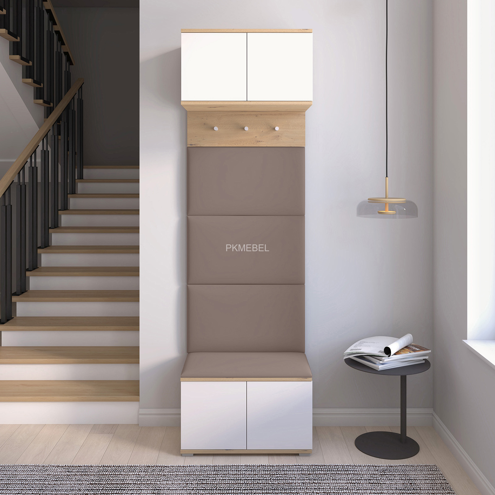 - szafkę na buty korpus w kolorze dąb artisan i fronty w kolorze białym