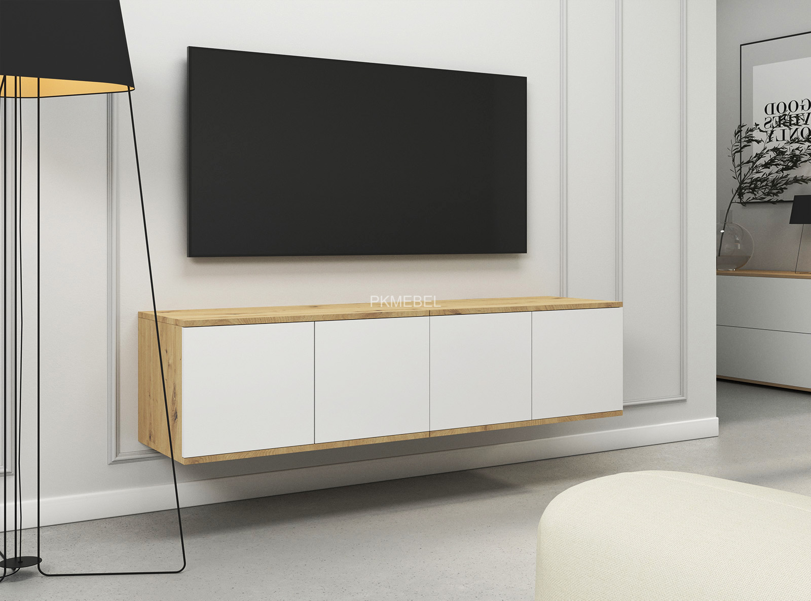 - korpus w kolorze dąb artisan, fronty w kolorze białym